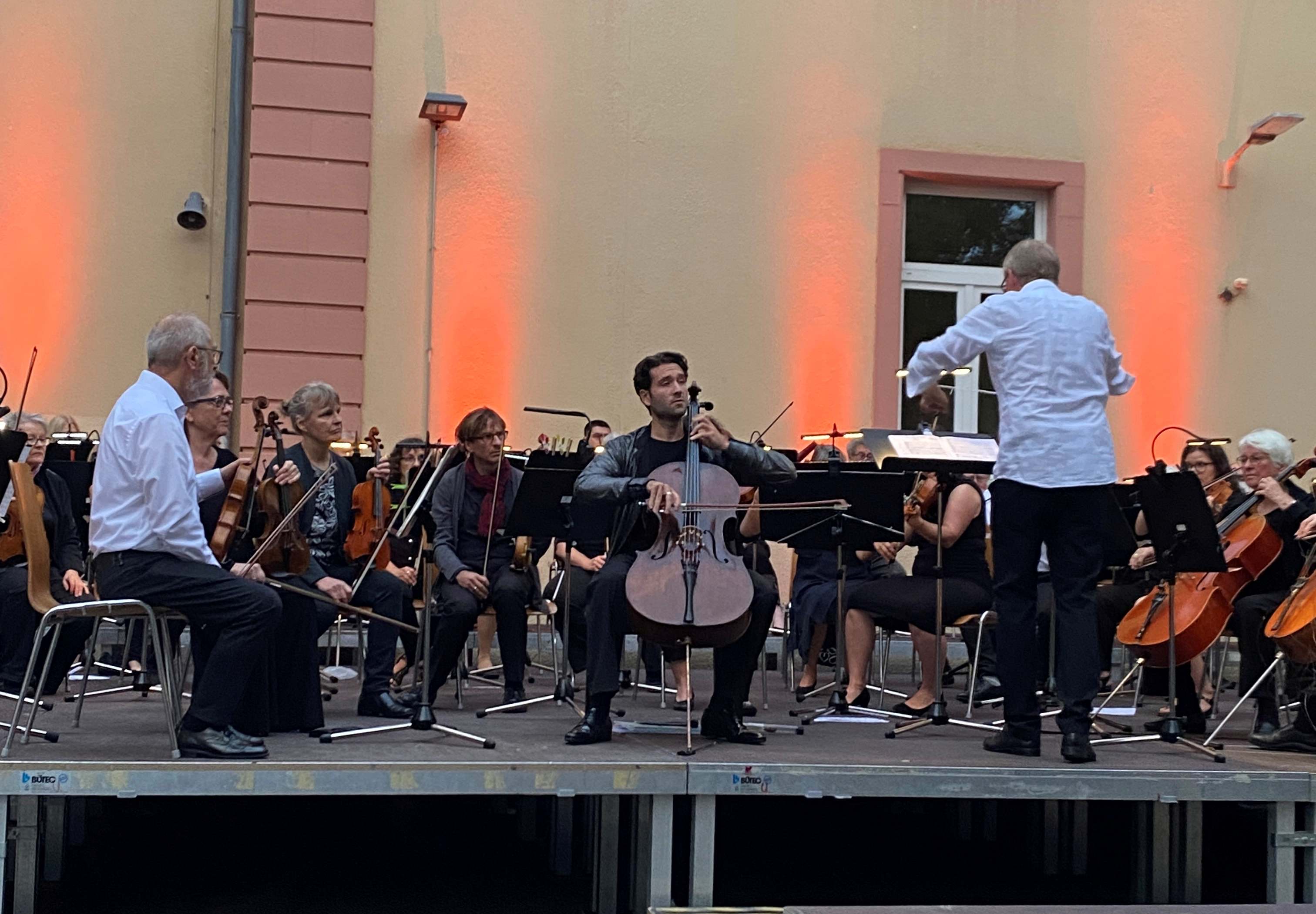Am 01.08. fand unsere alljährliche Serenade am Belvedere im Innenhof des Schönborngymnasiums in Bruchsal statt. Ja, nach 2 Jahren regenreicher Durststrecke konnten wir tatsächlich entgegen sämtlicher Wettervorhersagen draußen konzertieren. Trotz kühler Temperaturen und immer wieder aufkommenden Windes - Wäscheklammern zum Fixieren der Notenblätter waren fester Bestandteil der Orchesterausrüstung - ließ sich unser treues Publikum nicht abschrecken, so dass fast alle Plätze belegt waren.